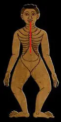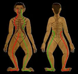 Начинается в области вокруг пупка, заканчивается в пальцах рук и ног. В некоторых источниках указывается что заканчивается также и в голове, уходя туда несколькими линиями