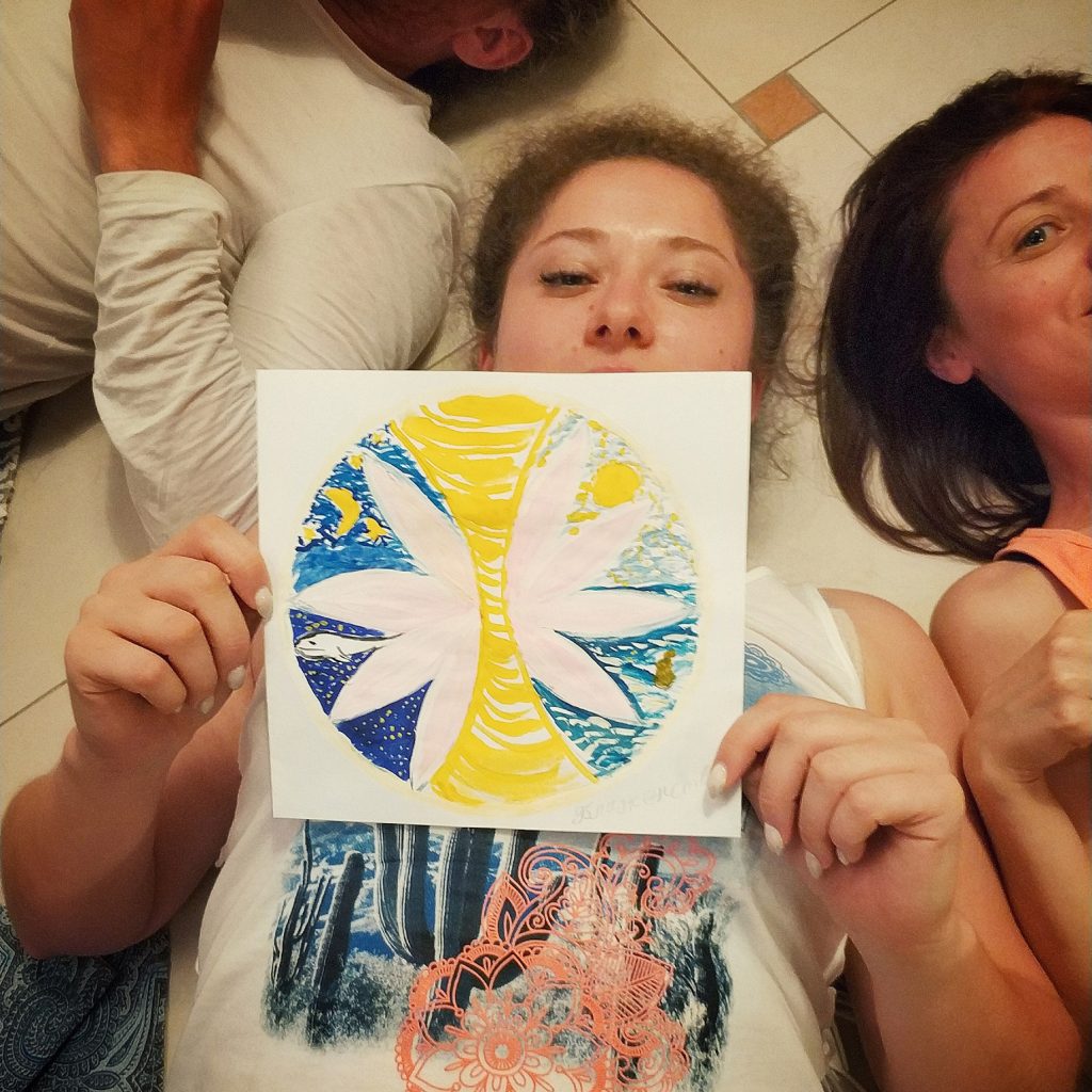 С утра опять была йога, позавтракав мы прошли ещё одну сессию холотропного дыхания. За два дня каждый участник дышал две сессии. На этот раз радость просто фонтанировала из меня наполняя пространство вокруг и хотя в моем сознании полученый опыт не успело ещё разложиться «по полочкам» , я чувствовала себя наконец-то здоровой, так как от невроза не осталось и следа. Таким образом, моя цель была достигнута – я вернулась к полноценной жизни, наполненной яркими красками, любовью и спокойствием. Несомненно, в этом огромная заслуга ведущего Юры и его помощницы Кати, которые грамотно организовали для нас это путешествие, создав атмосферу гармонии и умиротворения. Я очень признательна Юре за участие в моем опыте, за знания, которыми он с нами делился во время совместных трапез, за пение мантр, которые вызывали у меня чувство полета в запредельные космические просторы, да и просто за то, что веселил нас шутками и вел себя с нами легко, просто и непринужденно, что дополнительно придавало чувство расслабленности и комфорта.