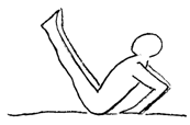 Поза: сядь на пол с вытянутыми вперед ногами. Поставь ладони позади, пальцы рук направлены вперед. Сгибая руки в локтях отклонись назад и поднимите прямые ноги ˜60º к полу. Вытягивая носки от себя оставайся в этом положении с глубоким и медленным дыханием. По окончанию без паузы перейди к следующей позе.