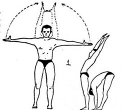 Встань и разводи прямые руки в стороны, растягивай назад и в стороны, большие пальцы при этом направлены вверх. В этом положении дыши дыханием огня.