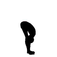 Перенесите левую ногу назад и поставьте около правой. Одновременно поднимите ягодицы и опустите голову между руками так, чтобы тело образовало треугольник с полом. Это движение выполняется на выдохе. Целью является достать пятками пол. Нагните голову по возможности так далеко вперед, чтобы глаза смотрели на колени. Фокус своего осознания направить на область шеи.