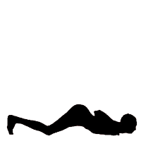 Согните колени и опустите их на пол, а затем коснитесь грудью и подбородком пола, сохраняя ягодицы поднятыми. Руки, подбородок, грудная клетка, колени и пальцы ног касаются пола. Спина прогнута. Дыхание задержать на выдохе от позы № 5. Это единственный раз, когда поочередный вдох – выдох при дыхании изменяется. Фокус осознавания следует держать на середине тела или на мышцах спины.